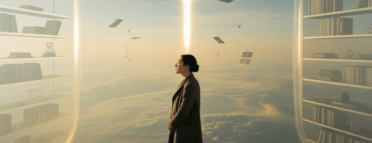 High above a scorched Earth, the floating repository Heliovault houses the last spectral records of true sunlight. Within it, one man is tasked with preserving humanity’s memory of warmth and color. But what happens when memory becomes a weapon—and a visitor threatens the balance?